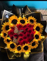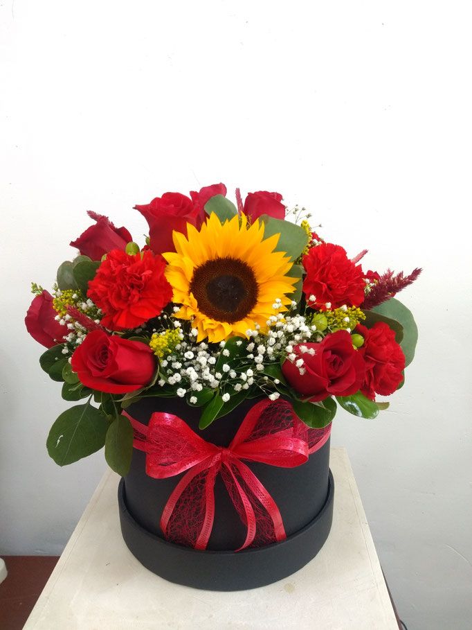 Girasoles y Rosas, un encantador ramo de flores ideal para sorprender a esa persona especial en su cumpleaños, aniversario, momento de conquista o simplemente porque sí, para alegrar y llenar de color su día.