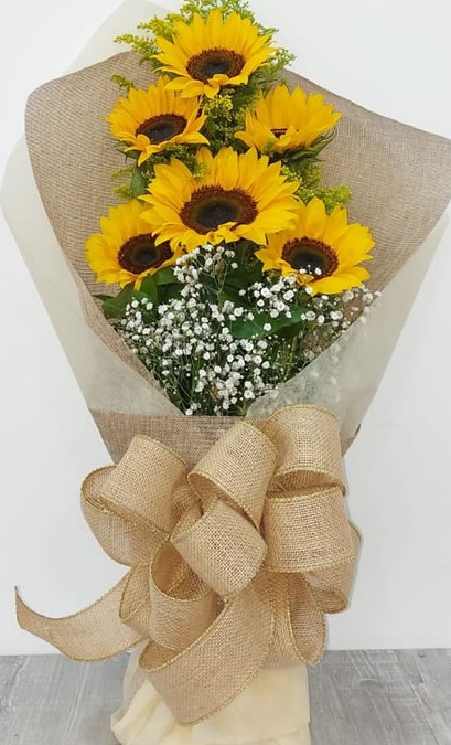 Un delicado ramillete de girasoles frescos que transmite alegría, energía y optimismo. Perfecto para iluminar cualquier espacio o sorprender a alguien especial con un detalle lleno de luz y calidez natural.